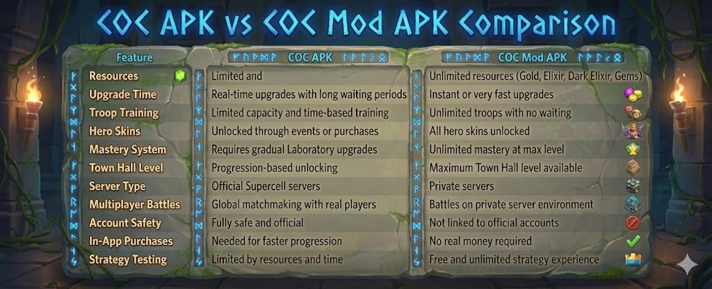 Players prefer private servers because they offer unlimited resources, instant upgrades, and complete freedom. Moreover, private servers offer access to advanced troops, heroes, and high-level content without the wait. Here players can practice new base layouts, army combinations, and battle strategies without losing a single point. In addition, community-driven servers offer frequent custom updates and unique options.