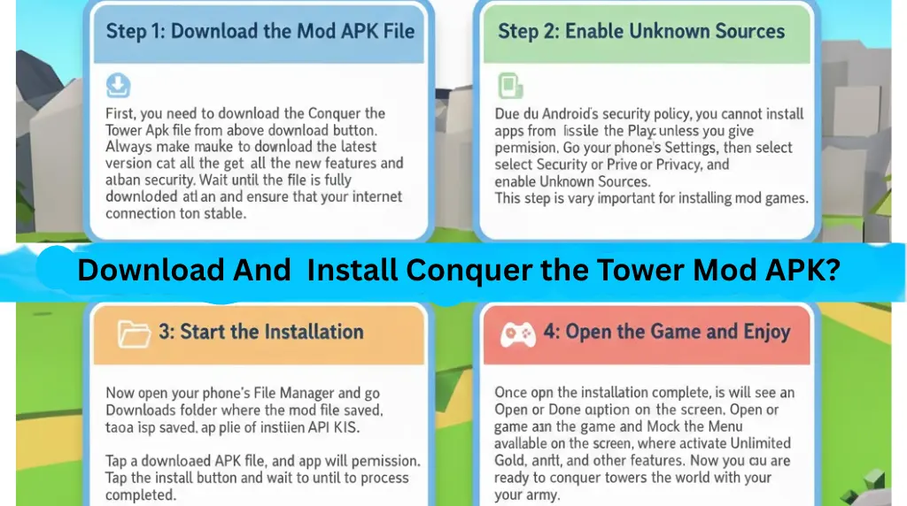 Installing Conquer the Tower Mod Apk is very easy, but since it is a modified version, you need to follow a few extra steps compared to normal apps. Carefully follow the step-by-step method below so you can enjoy the game without any issues: