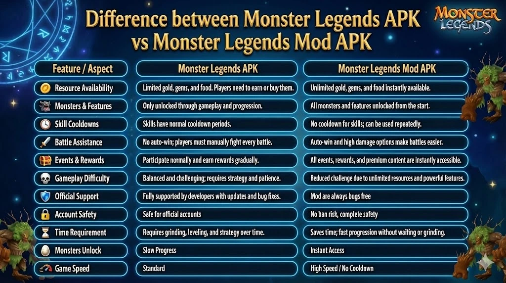 Difference between Monster Legends APK vs Monster Legends Mod APK